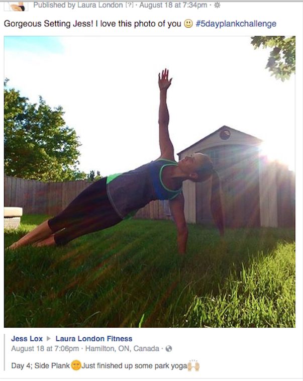 - Snap a selfie and share one or more PLANK photos on my Facebook page